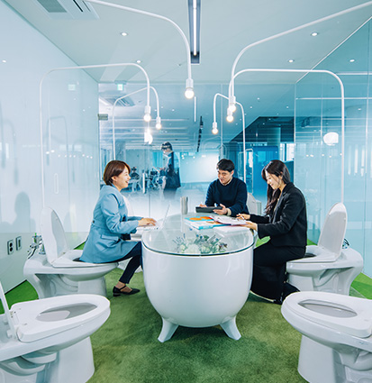 자율 좌석제로 회장님이 쓰는 의자와 똑같은 사무의자에서, 그리고 원하는 자리에서 편하게 일 할 수 있습니다.