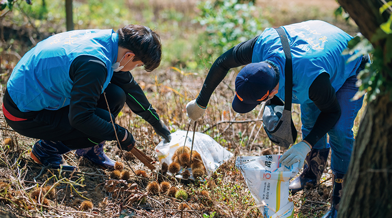 公州市正安面(チョンアンミョン)の栗栽培農家の人手不足解消のため、自社の従業員約40名が栗の収穫ボランティアに参加しました。この活動は、外国人労働者の減少による農家での労働力不足を補うための地域社会からの要請によって行われ、地域農業の生産性維持と地域共生に貢献しました。