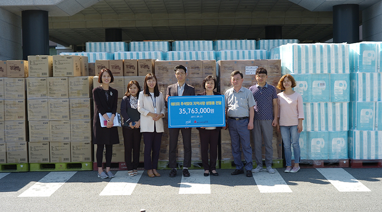 Der Beitrag zur Gemeinschaft am Sitz von Atomy in Gongju läuft kontinuierlich seit der Gründung im Jahr 2009. Wir versorgen regelmäßig einkommensschwache Familien und sozial schwache Gruppen mit Hilfsgütern, spenden Schulmaterial und Stipendien für weiterführende Schulen und versorgen Behörden und soziale Einrichtungen mit dem Nötigsten.
