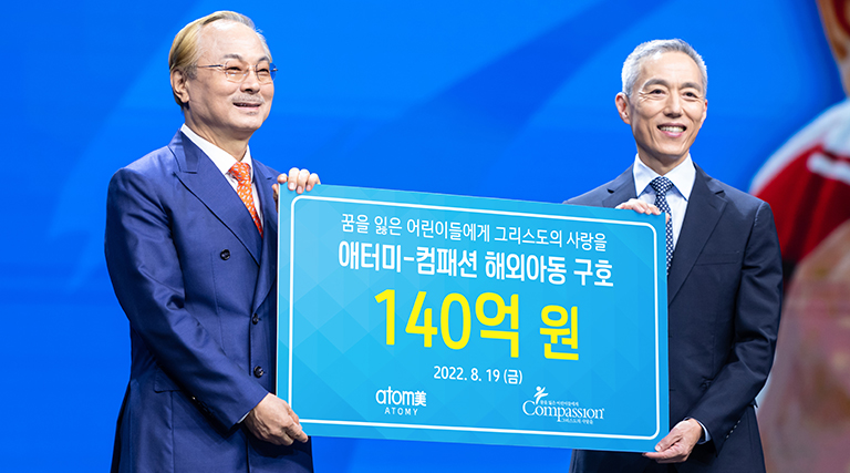 Compassion Korea ist die einzige Kinderhilfsorganisation der Welt, die arme Kinder in 25 Ländern weltweit unterstützt und ihnen eine ganzheitliche Betreuung bietet, bis sie unabhängige Erwachsene sind. Wir bieten Kindern, die in Armut leben, nicht nur Lernmöglichkeiten, mit denen sie sich zu gesunden Mitgliedern der Gesellschaft entwickeln, sondern unterstützen sie auch kontinuierlich mit regelmäßigen Gesundheitschecks und sozial-emotionaler Betreuung. Im Jahr 2021 stellte Atomy über Compassion Korea 10 Mio. USD (etwa 12 Mrd. KRW) zur Verfügung. Spenden von Atomy gingen an das Haiti Earthquake Emergency Parenting Supplemental Program, das COVID-19 Emergency Parenting Supplemental Program, das Youth Parenting Development Program in Asien und die Patenschaft für nicht geförderte Kinder in Asien sowie den Dienst Growing252. Im Dezember 2021 gründeten wir eine feste Partnerschaft über Kinderhilfsmaßnahmen, mit der wir 10.000 Kinder in Übersee mit 50.000 KRW pro Monat, also monatlich insgesamt 500 Mio. KRW, unterstützen. Im Jahr 2022 spendeten wir weitere 14 Mrd. KRW für Kinder in aller Welt, unter anderem für den Wiederaufbau in Konfliktgebieten in Äthiopien und COVID-19-Unterstützung.