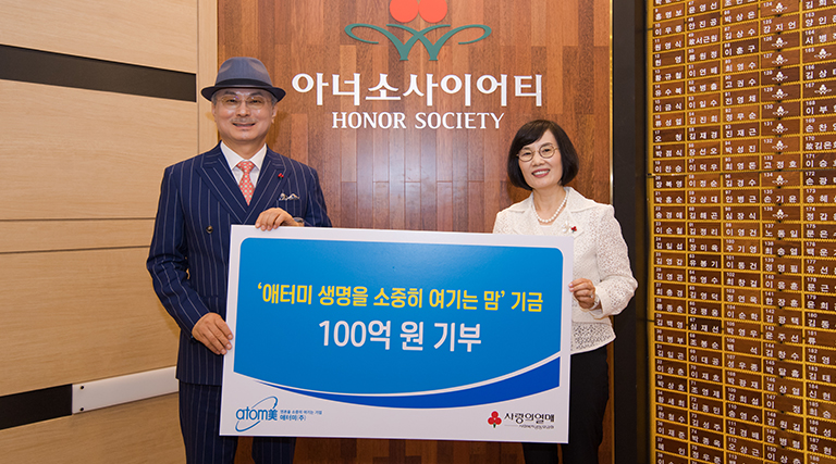 Das Verhältnis Spenden-Umsatz-Verhältnis erreichte bei Atomy einen Durchschnitt von 1,6%, womit Atomy unter den 41 größten Vertriebsunternehmen bei den Inlandsumsätzen an erster Stelle steht.